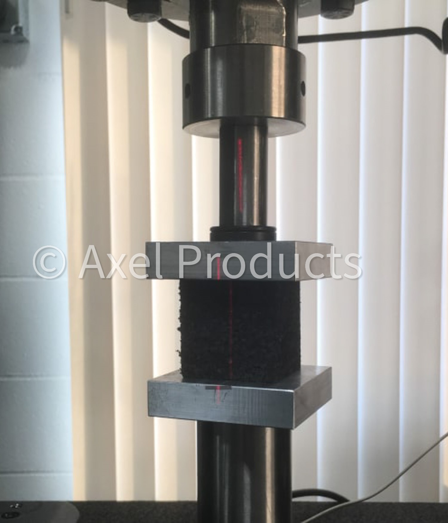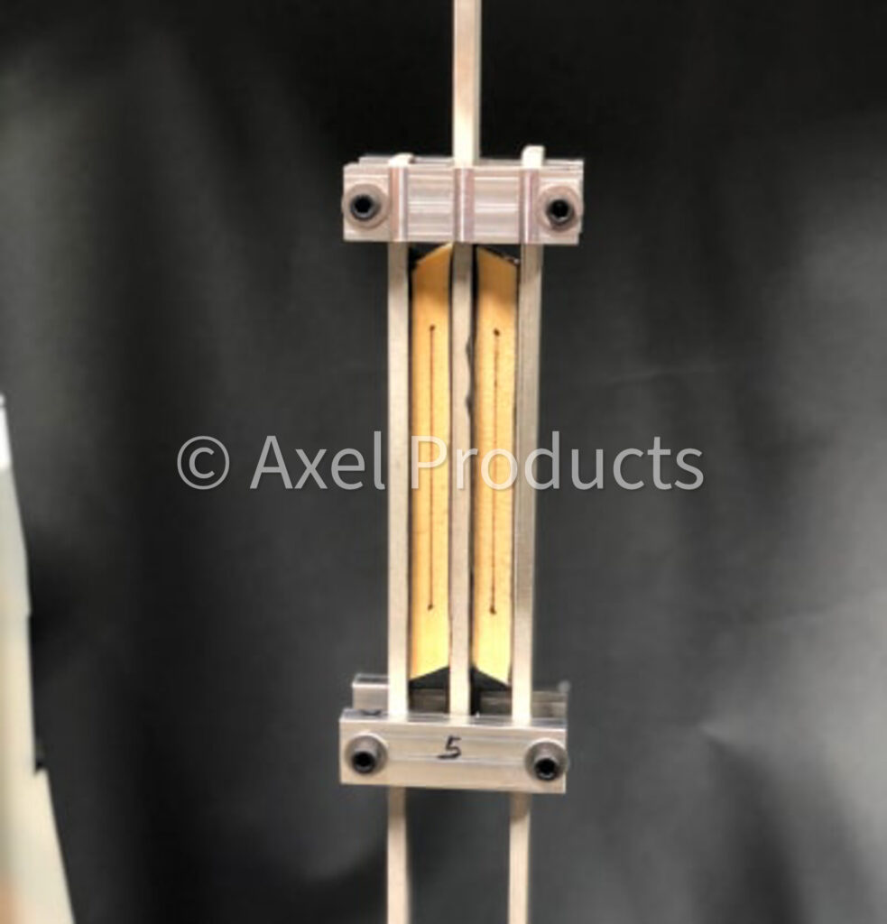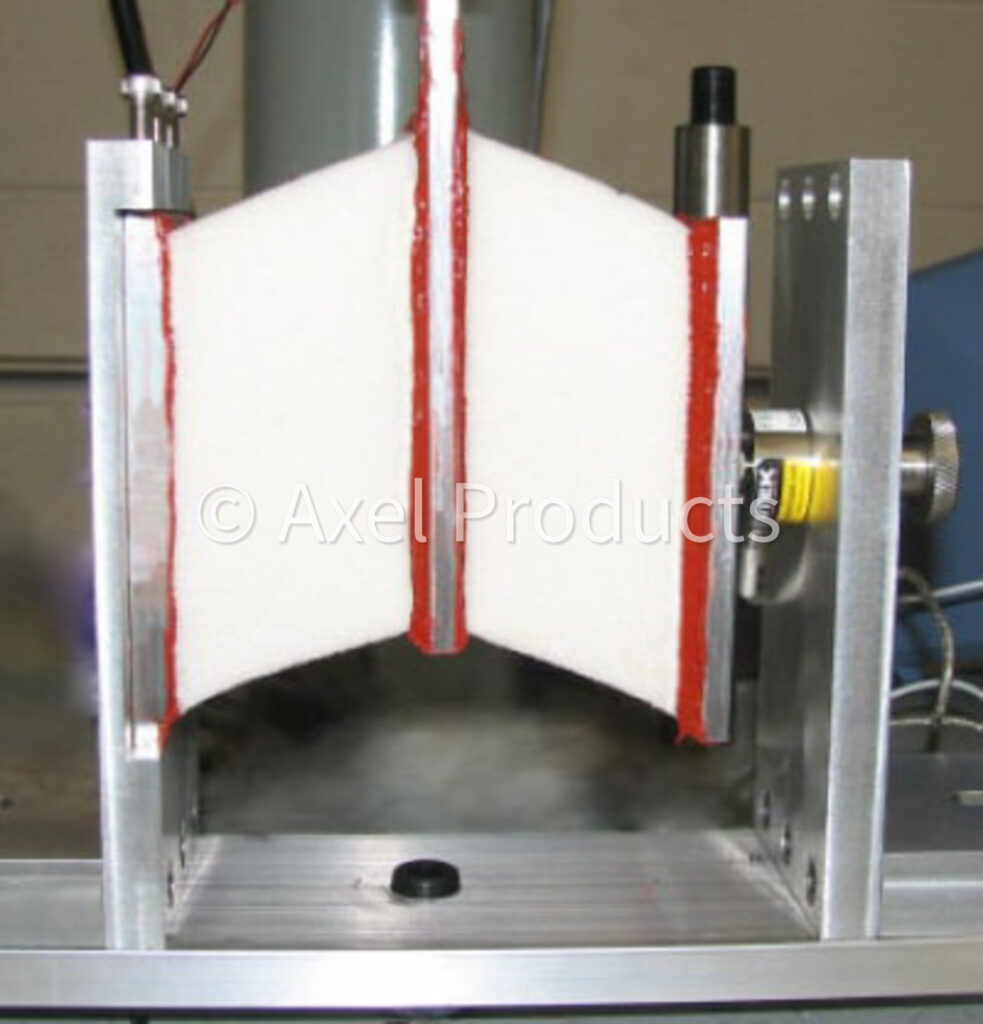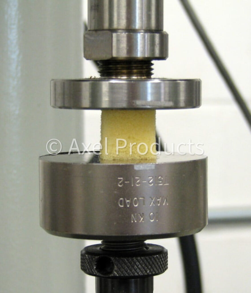 However, in some cases, great care needs to be taken not to crush or alter the tensile specimen in gripping. At Axel Products, sometimes custom fitted holder cups are used to bind and hold the ends of the foam tensile specimen.