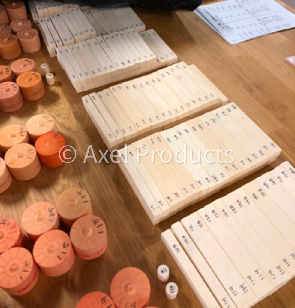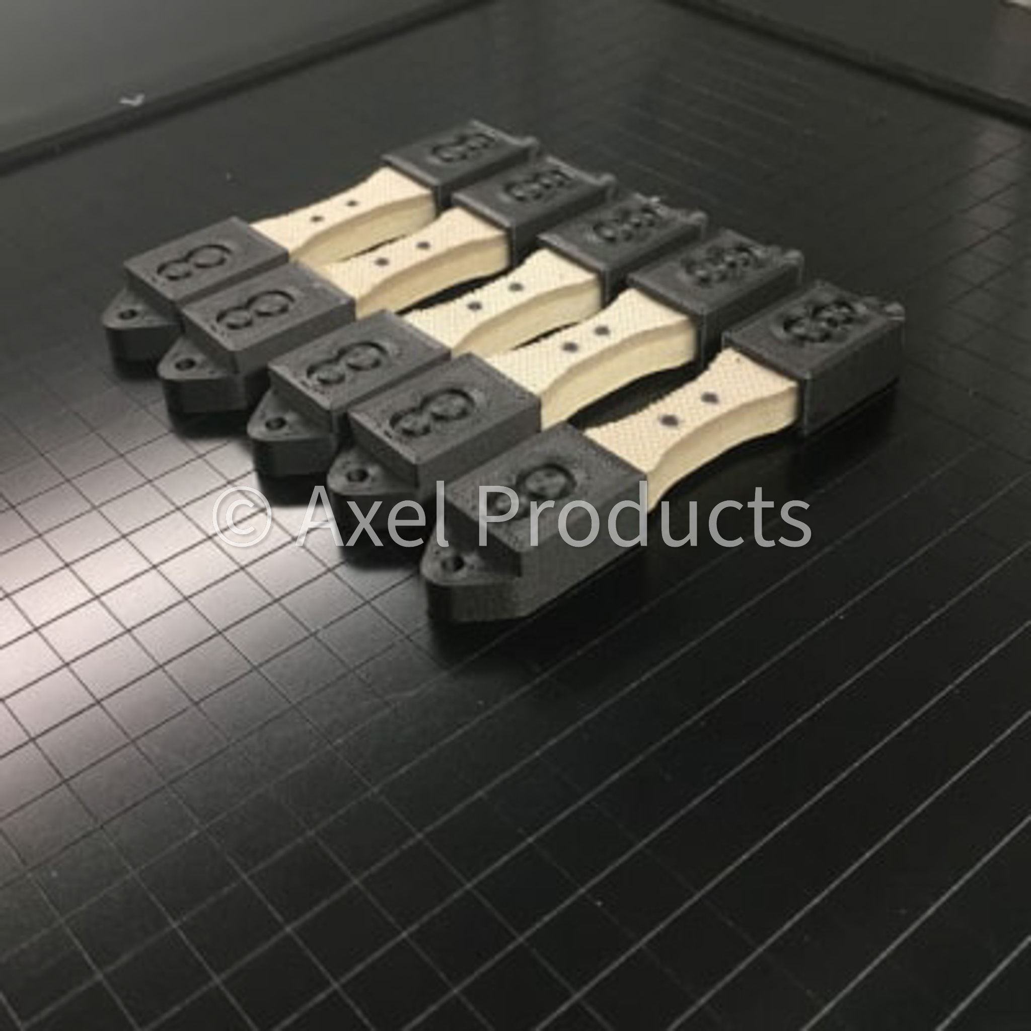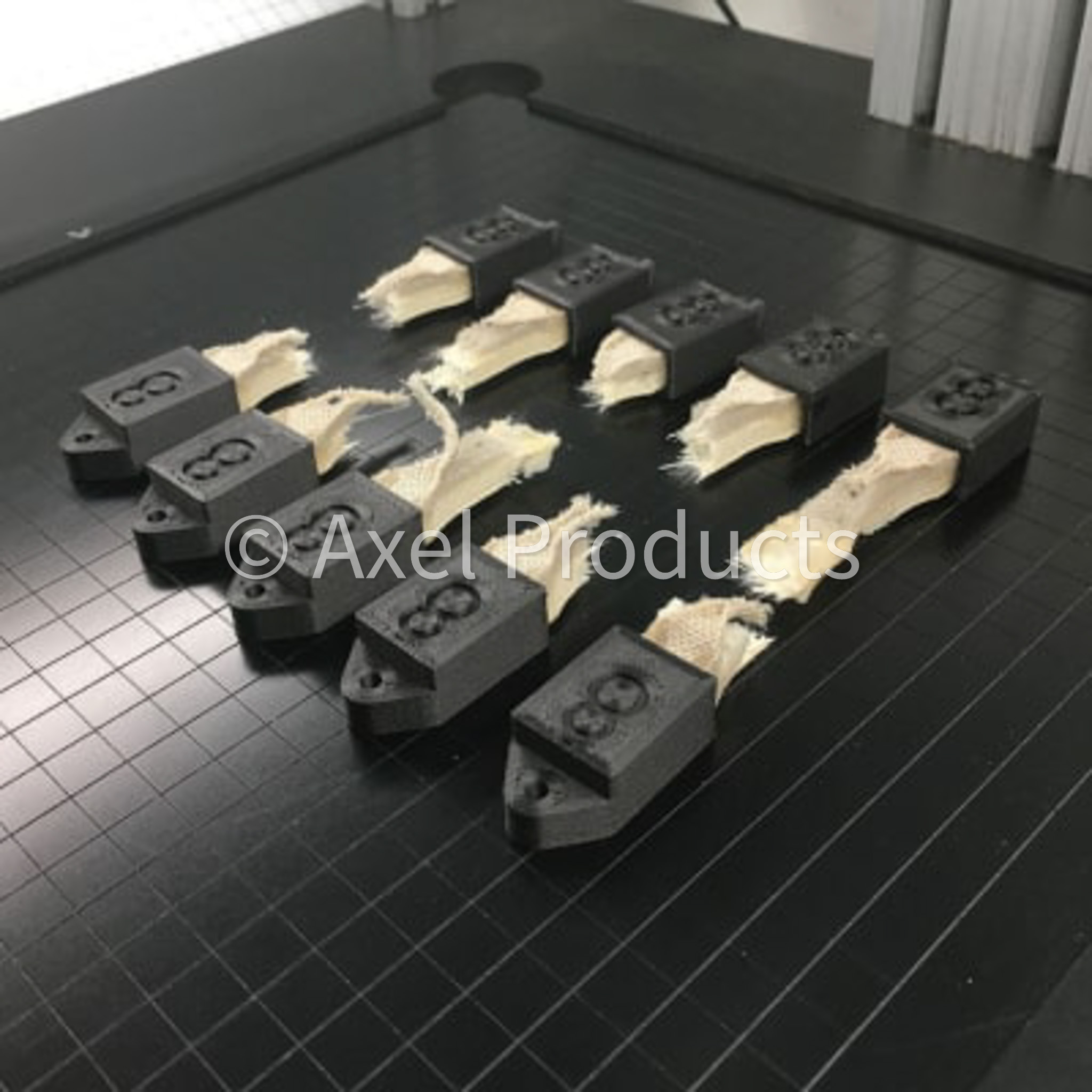 However, in some cases, great care needs to be taken not to crush or alter the tensile specimen in gripping. At Axel Products, sometimes custom fitted holder cups are used to bind and hold the ends of the foam tensile specimen.