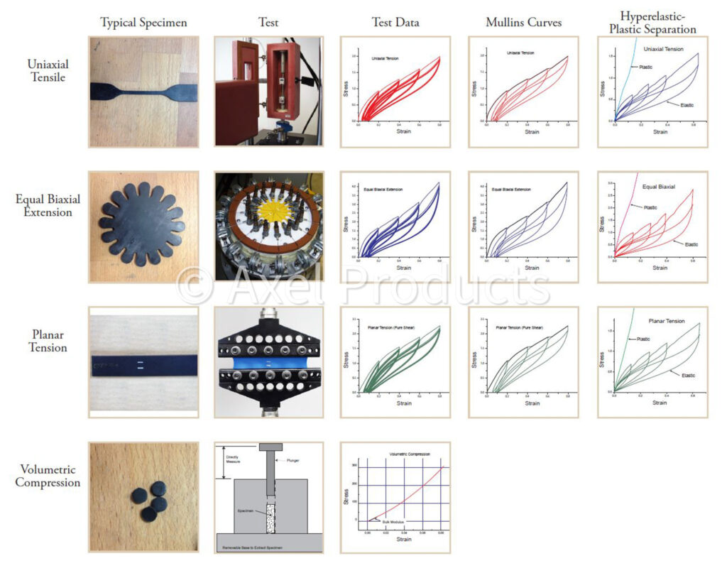 Axel Products provides testing services for engineers and analysts. In serving analysts and performing training with the major simulation software providers, we have developed the ability to make stable and descriptive material models for elastomers and some plastics.