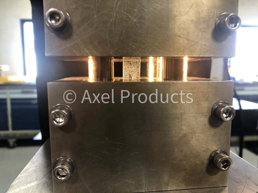 The in-plane compression experiment performed at Axel typically uses the Wyoming Combined Loading Compression Test Fixtures (ASTM D6641) modified for use with optical (DIC) strain measuring.