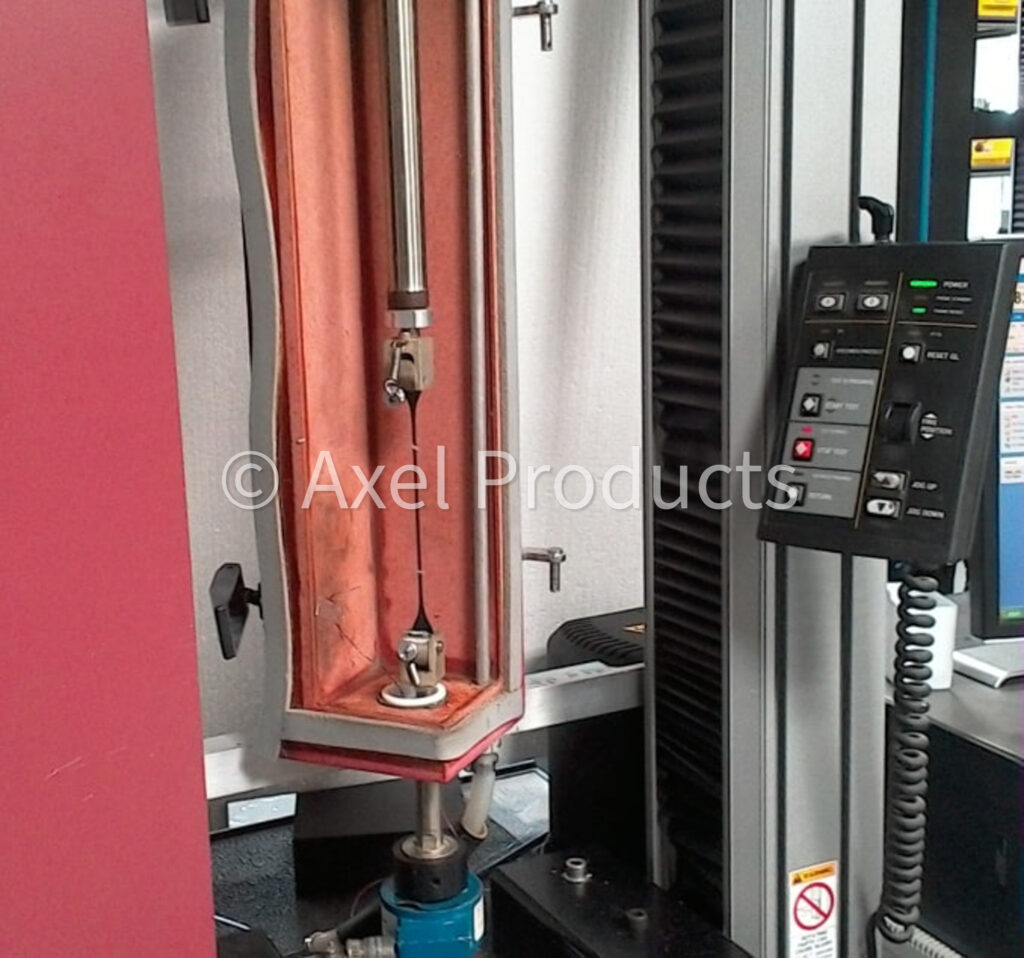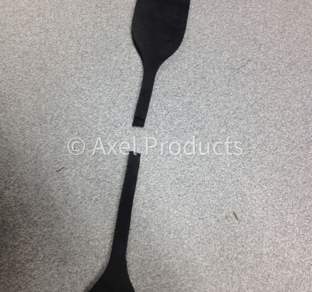 There are many ways to design a crack growth experiment, and at Axel Products we perform them under many conditions. For simplicity, a common approach is described herein: A pure shear (planar tension) test specimen is selected because the strain state at the crack tip stays the same as the crack grows and the calculation of crack tip energy is simple.